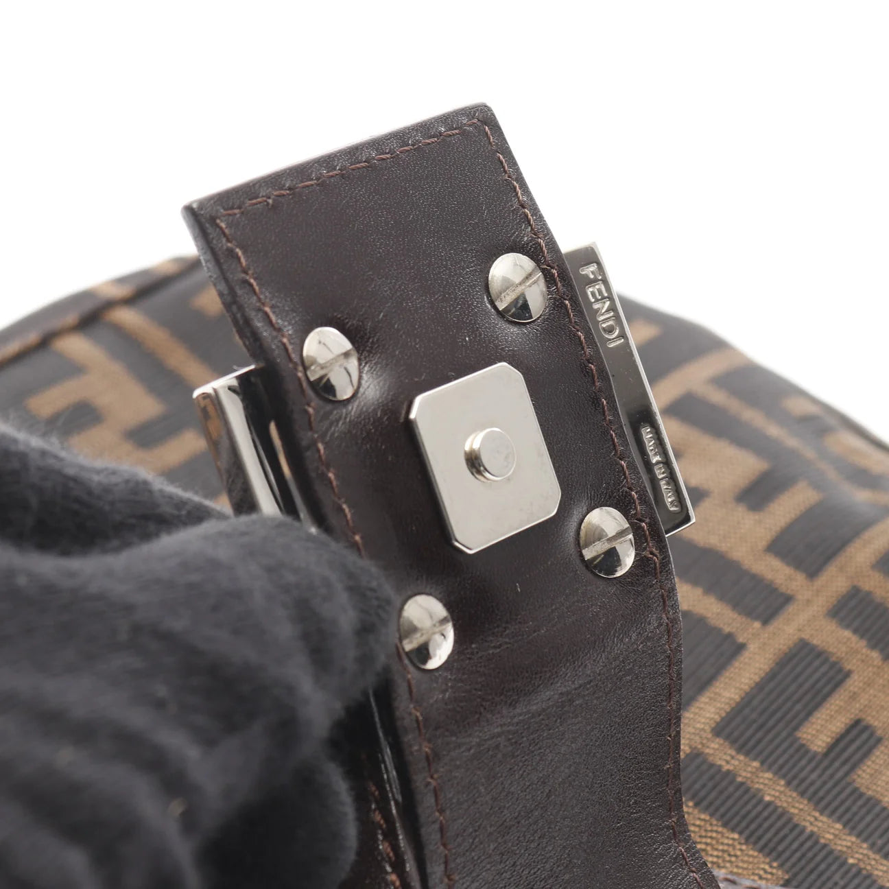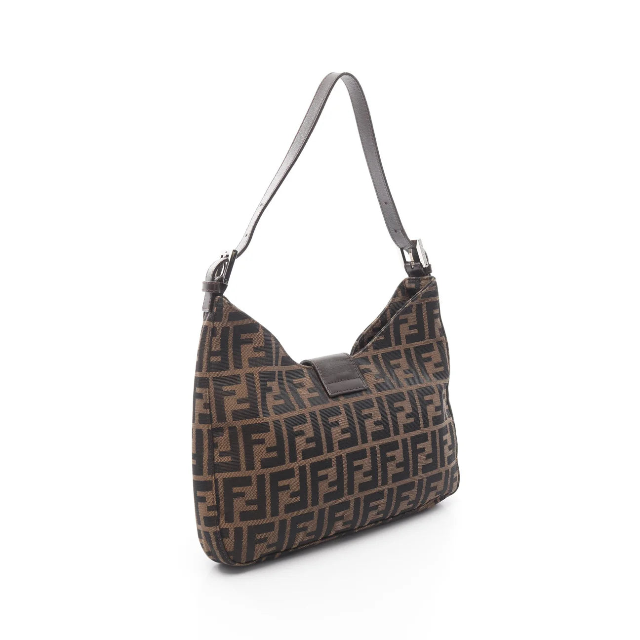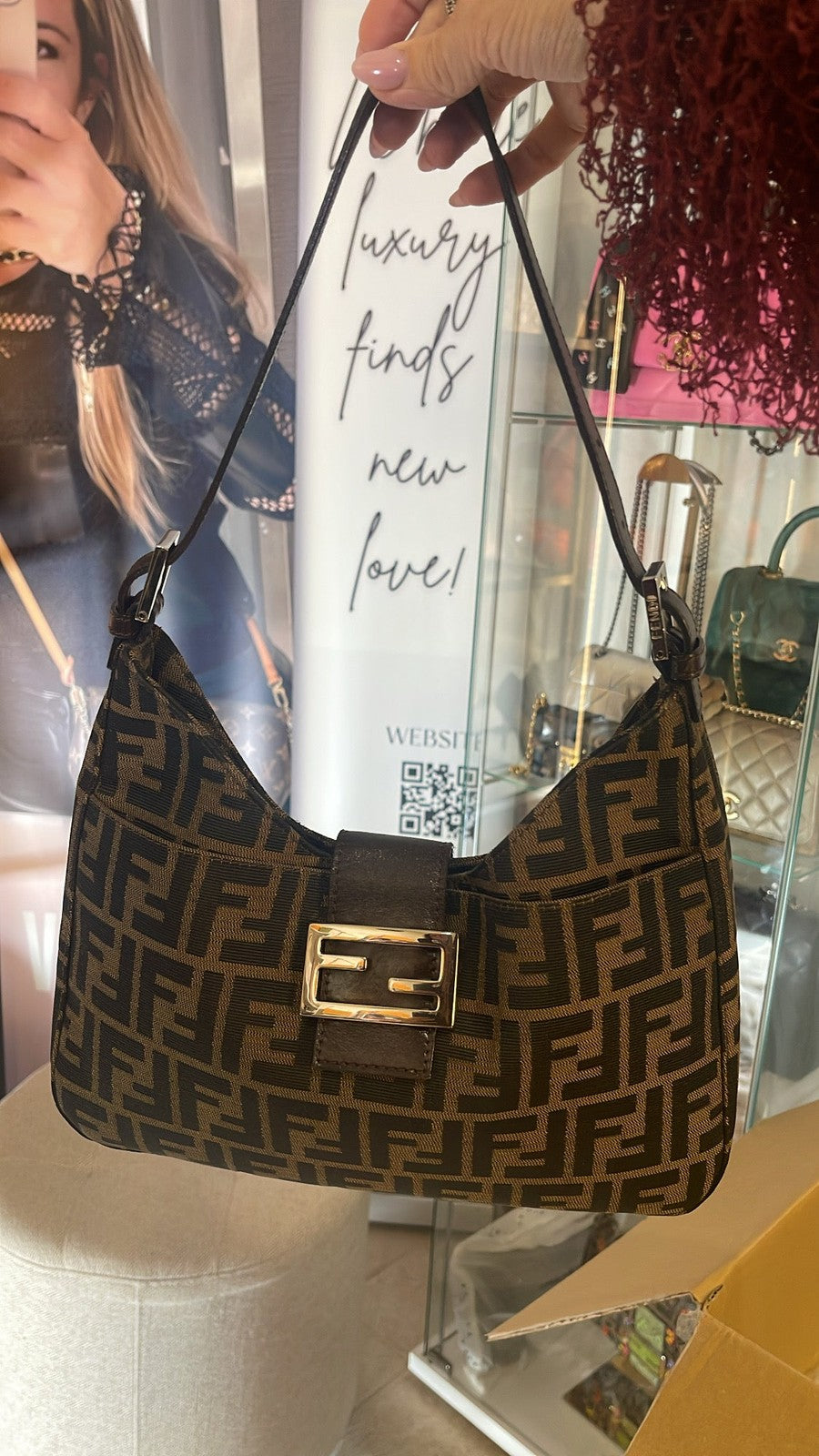 This Fendi is truly one-of-a-kind, featuring a luxurious tortoise-printed leather shoulder strap and matching front detailing that adds a bold, sophisticated touch to the classic FF canvas.
